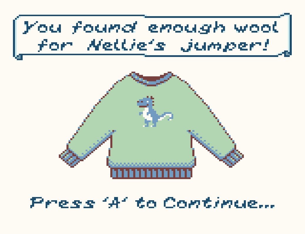 Als Mama ist es eure Aufgabe, für Tom, Nellie und Daisy einen Pullover zu stricken. Die benötigte Wolle findet sich innerhalb und außerhalb der Hütte. Um an die Wolle zu gelangen, müssen Rätsel gelöst werden. Insgesamt benötigt ihr 5x Wolle für einen Pullover. Demnach sind 15 Level zu absolvieren. Bei den Aufgaben handelt es sich um Schieberätsel, bei denen Eisblöcke über Löcher oder auf Schalter geschoben werden müssen. Die Position des Wollknäuels ist im Level sichtbar – allerdings wird der Zugriff auf die Wolle erst dann gewährt, wenn das Rätsel erfolgreich absolviert wurde.