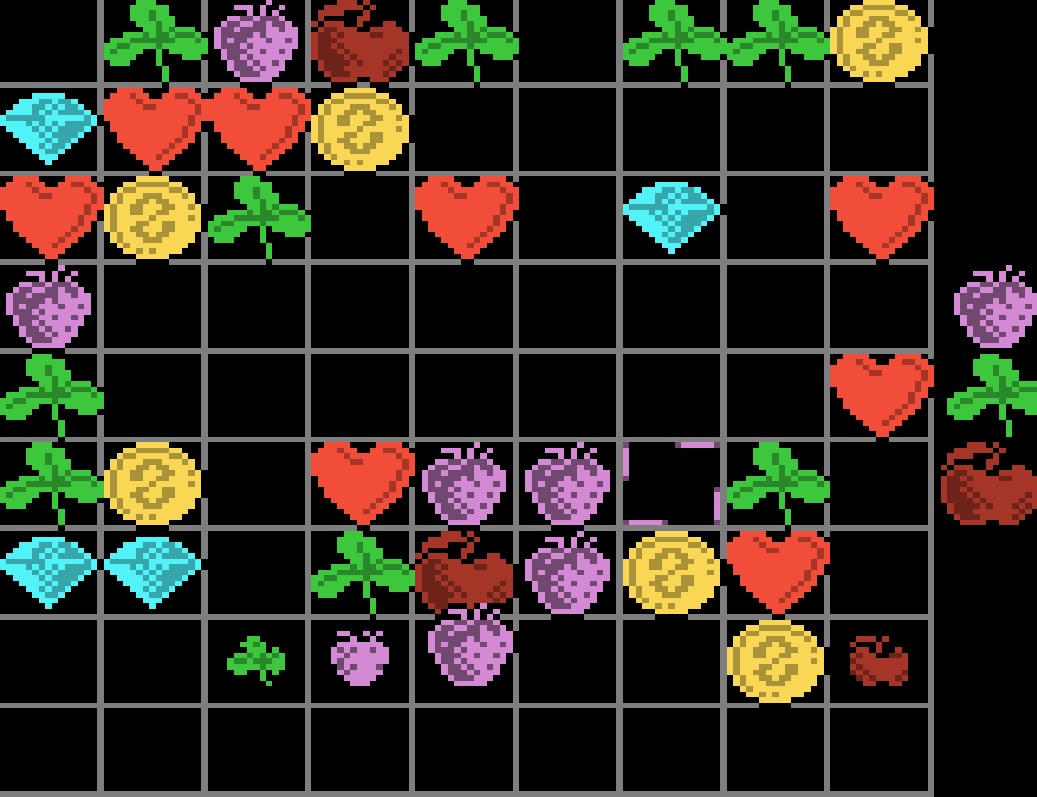 Ziel des Spiels ist es möglichst in jeder Runde horizontal, vertikal oder diagonal fünf oder mehr gleiche Symbole anzuordnen, um diese verschwinden zu lassen. Dadurch generiert ihr nicht nur Punkte, sondern sorgt auch dafür, dass das Spielbrett begehbar bleibt.
