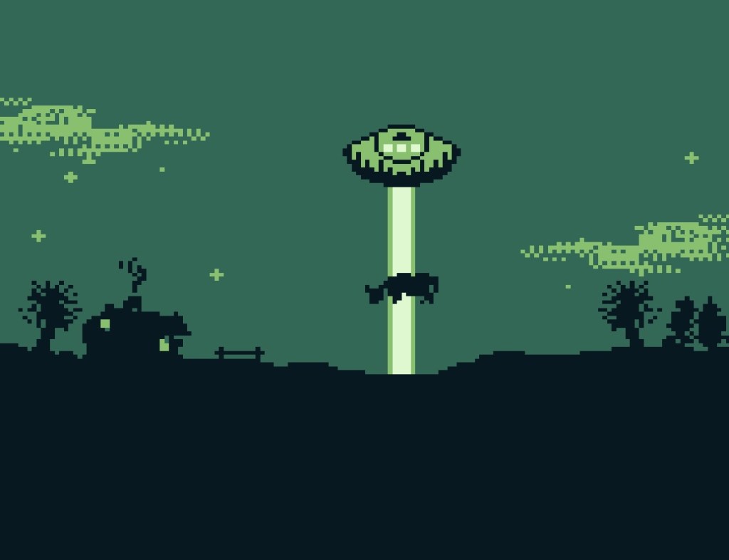 Mission 1 führt uns ins tiefste Hinterland. Zehn Rinder gilt es von den Farmern mit dem Traktorstrahl des UFOs einzusammeln. Natürlich nicht ohne Gegenwehr der Eigentümer. Die Farmer beschießen uns munter mit ihren Flinten.