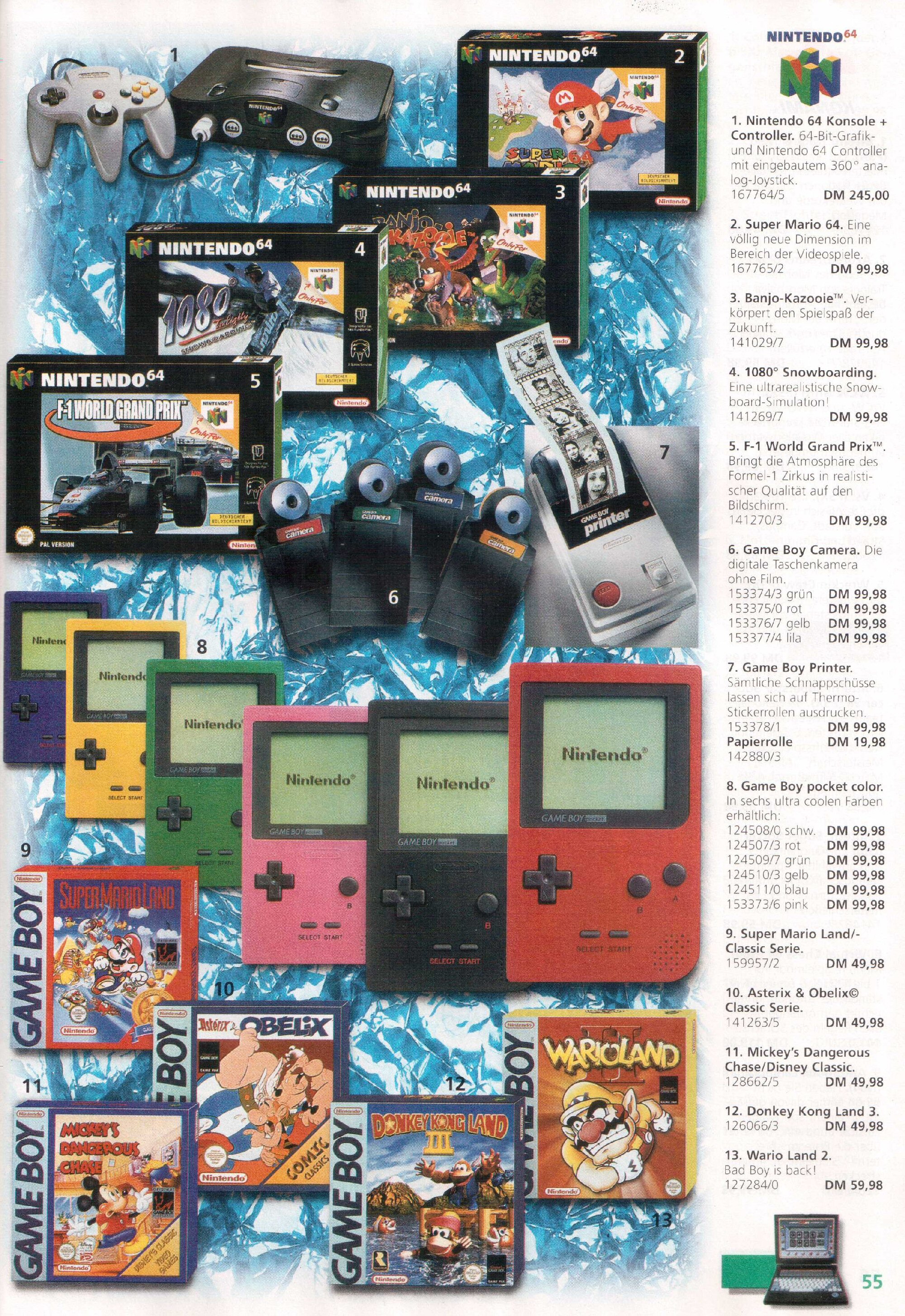 Im Jahr 1998 war der Game Boy Color scheinbar bei Müller noch nicht zu haben, dafür aber Game Boy Pocket-Modelle in diversen tollen Farben. Die Pocket-Variante war beträchtlich kleiner und handlicher als der klassische Game Boy. Ebenfalls wurde er mit einem verbesserten Display ausgestattet und lief nun mit 2x AAA-Batterien 1,5V. Leider verkürzte sich dadurch die Spielzeit auf 10 Stunden. Zum Vergleich: der Game Boy Classic läuft mit 4x AA-Batterien 1,5V ganze 30 Stunden lang. Das schwarze und rote Modell gefällt mir am besten.