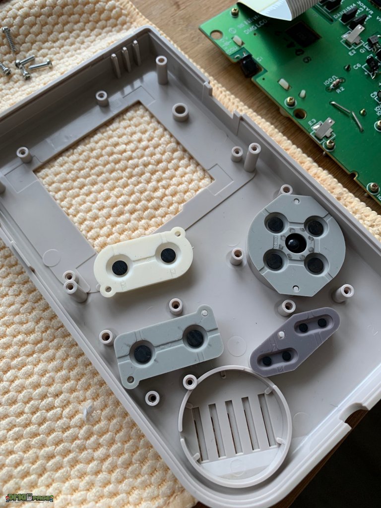 Schaut euch mal die abgebildeten Silikon-Parts für die A und B-Knöpfe genauer an. Fällt euch etwas auf? Genau! Beide Parts besitzen zwar abgerundete Ecken, sind aber in ihrer Form doch verschieden. Das untere Teil wurde nur in Game Boy Modellen verwendet, die tatsächlich über Platinen aus dem Jahr 1989 verfügen.