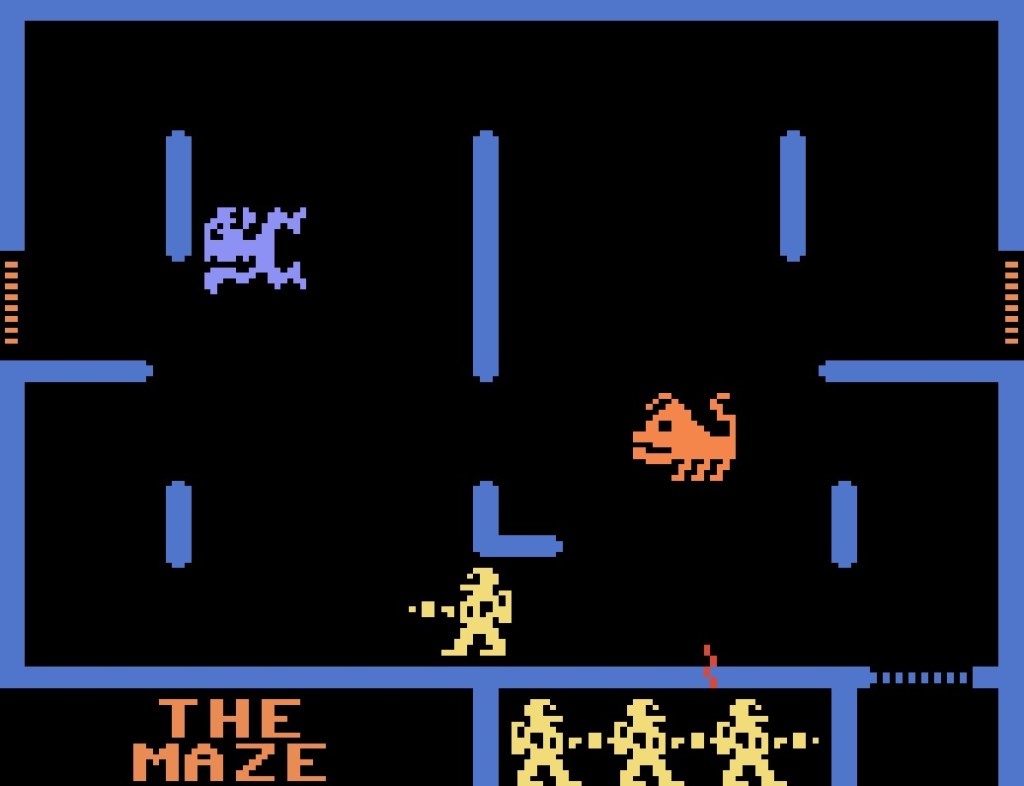 Deine Aufgabe besteht darin, als „Worrior“ die Dungeons von den Monstern zu befreien. Die Monster selbst sind sichtbar – allerdings durch Wände zu dir getrennt. Bewege dich in die Nähe eines Monsters und schieße es ab. Doch Vorsicht: auch die Monster sind bewaffnet. Wirst du getroffen oder von einem Gegner berührt, verlierst du direkt ein Leben. Insgesamt stehen dir 4 Leben zur Verfügung.