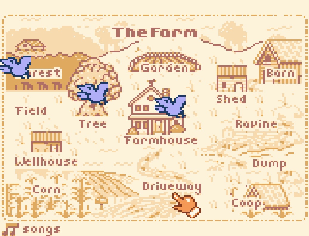 Der Bauernhof besteht insgesamt aus 14 Leveln (zum Beispiel das Maisfeld, die Scheune, der Komposthaufen, die Baracke und der angrenzende Wald). In jedem Level hält sich eine Krähe versteckt. Berührt ihr die Krähe, ist das Level beendet. Allerdings solltet ihr nicht voreilig sein, denn jedes Level kann auch mit dem Ziel „perfekt“ abgeschossen werden. Dafür müsst ihr alle Blumen einsammeln und keinen Schaden eingesteckt haben. Gelingt euch dies, wird das jeweilige Level auf der Karte mit einer animierten Krähe als abgeschlossen dargestellt. Beendet ihr das Level allerdings ohne diese Voraussetzungen erfüllt zu haben, bleibt die Krähe auf der Karte statisch. Lustig: in einem Level versperrt euch das Huhn Theresa den Weg und lässt euch erst durch, wenn ihr das verschwundene Ei zurückgebracht habt.