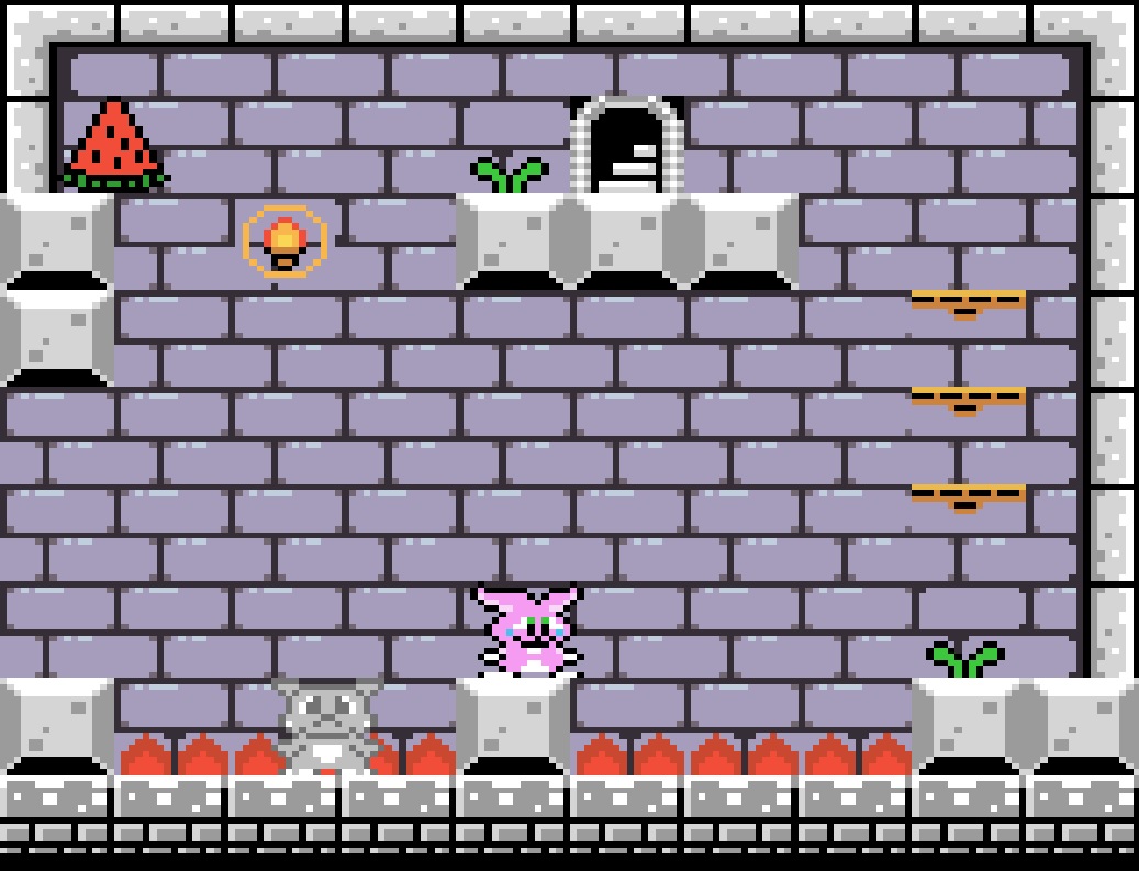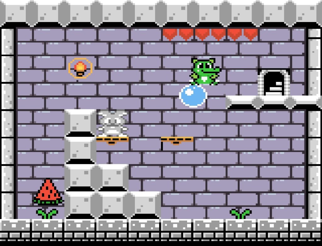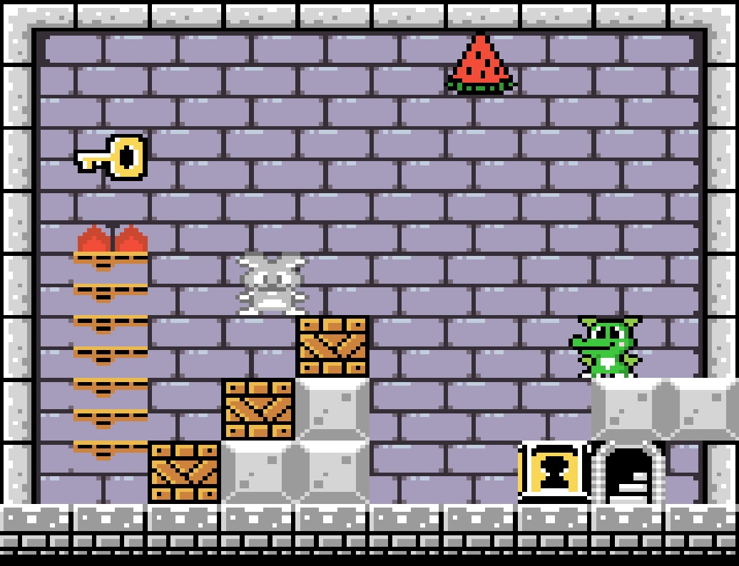 Optional bieten die Level Wassermelonenstücke, die lediglich bei Spielende statistisch ausgewertet werden. Sammler versuchen natürlich an sämtliche Melonenstücke zu gelangen. Falls ihr euch in eine ausweglose Situation manövriert habt, drückt einfach die Start-Taste für den Level-Reset.