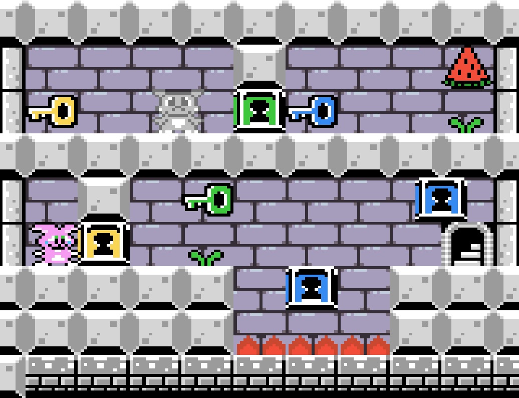 Manche Ausgänge sind verschlossen. Im jeweiligen Level müsst ihr also erst den Schlüssel erreichen. Grundsätzlich ist bei jedem neuen Level zu empfehlen, dass ihr euch erst einen Eindruck verschafft und dann gedanklich überlegt, wie ihr welchen Charakter steuern müsst, um das Ziel zu erreichen. Berücksichtigt hierbei unbedingt, dass nur Wile F. unbeschadet Stacheln passieren kann, während Bop Bop die Fähigkeit besitzt, als Einziger die Level tatsächlich zu beenden.