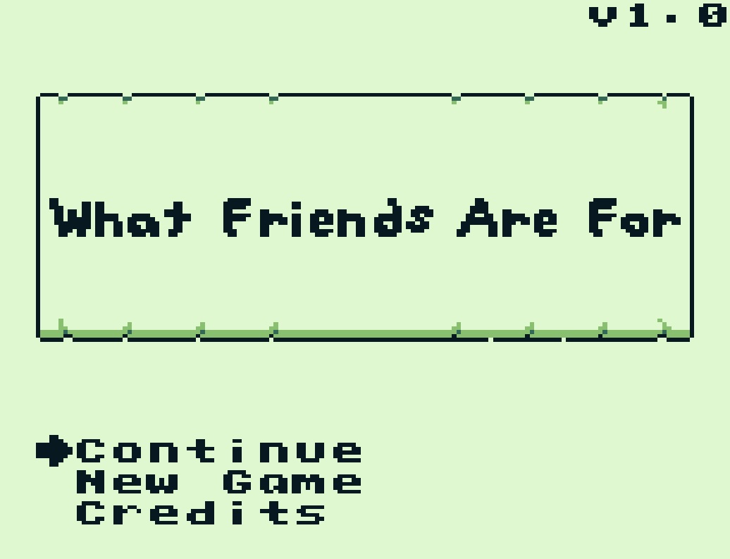 What friends are for hat beim diesjährigen Game Boy Showdown den ersten Platz erzielen können. Das relativ kurze Spiel bietet eine interessante Spielmechanik und macht Laune. Interesse? Dann ►hier das ROM herunterladen.