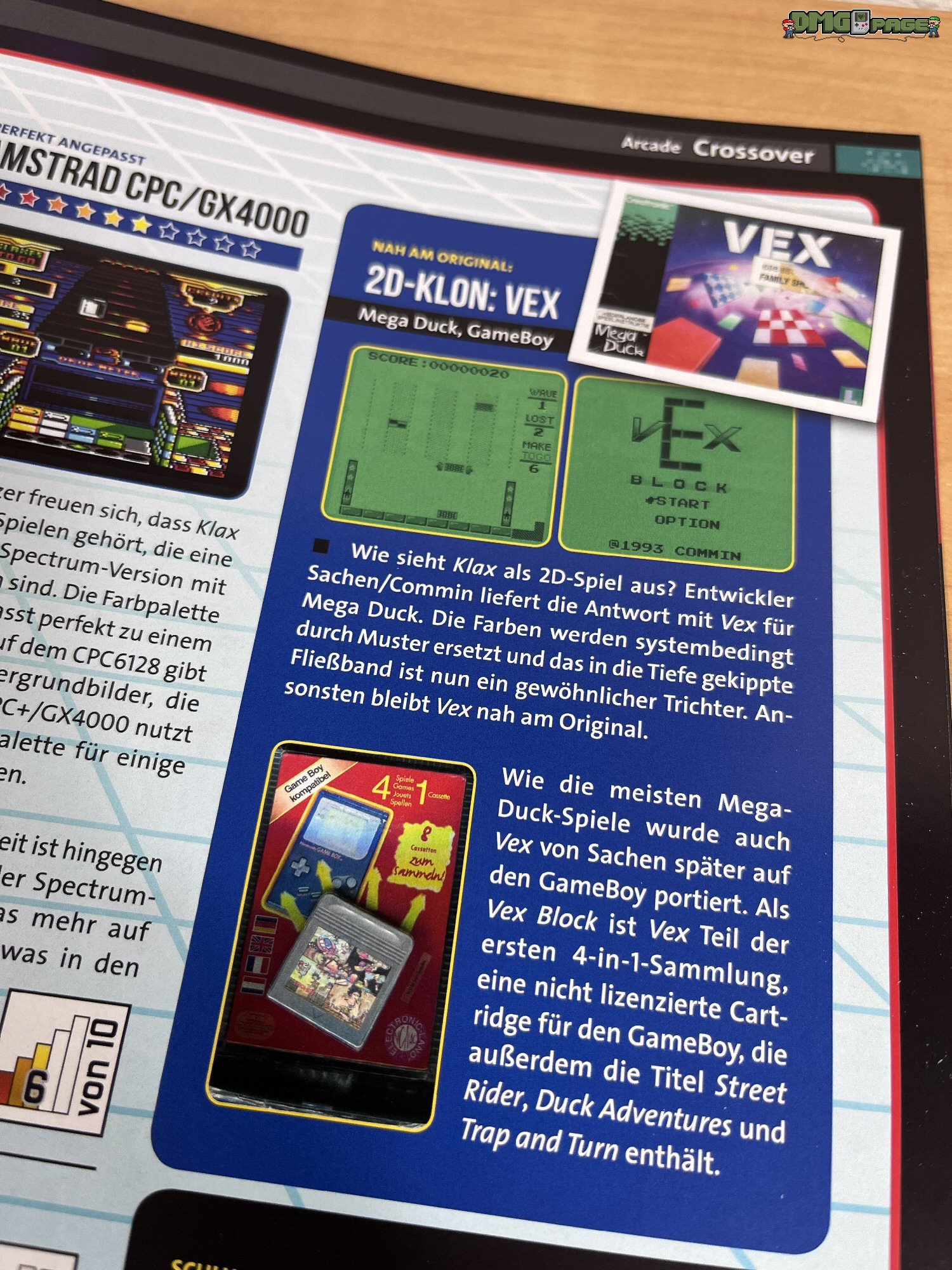 Ziemlich weit hinten in der Return befindet sich ein umfangreicher Bericht zum Arcade-Klassiker Klax. Auch der Game Boy Classic und Color haben entsprechende Umsetzungen spendiert bekommen. Interessant: ein 2D-Klon von Klax ist als Vex für den Mega Duck-Handheld erschienen. Die Firma Sachen portiere Vex dann schließlich auch auf den Game Boy. Vex findet ihr unter dem Namen Vex Block auf der nicht lizenzierten Cartridge 4B-001.