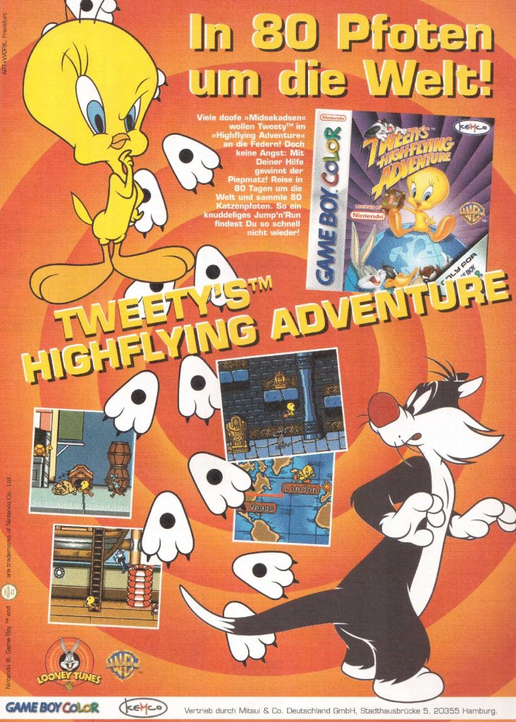 (pwc) Tja was haben denn Pfoten mit Tweety zu tun, fragt ihr euch bestimmt als erstes, oder? Diese muss das kleine gelbe Vögelchen auf seinem Abenteuer durch die Welt einsammeln. Tweety’s Highflying Adventure habe ich zwar selbst noch nicht gespielt – allerdings bekomme ich doch direkt Lust mich wieder etwas mehr mit den Looney Tunes zu beschäftigen. Den Screenshots in dieser Werbeanzeige sei Dank!