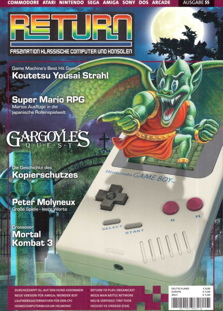 Kommen wir zum Highlight der aktuellen Ausgabe: dem Gargoyle’s Quest-Beitrag. Als eines der recht frühen Game Boy-Titel begeistert das Abenteuer um Firebrand mit grandioser Grafik, einer gruseligen Atmosphäre, einem durchdringenden Soundtrack und dem zur damaligen Zeit Capcom-typischen Schwierigkeitsgrad. Wie der Autor des Beitrags schon zu Beginn feststellt, steht die freundliche Coverillustration in keinem Verhältnis zum dargebotenen Spielinhalt. Wer eine passende Frustrationstoleranz und entsprechend Zeit mitbringt, sollte sich Gargoyle’s Quest definitiv einmal ansehen.