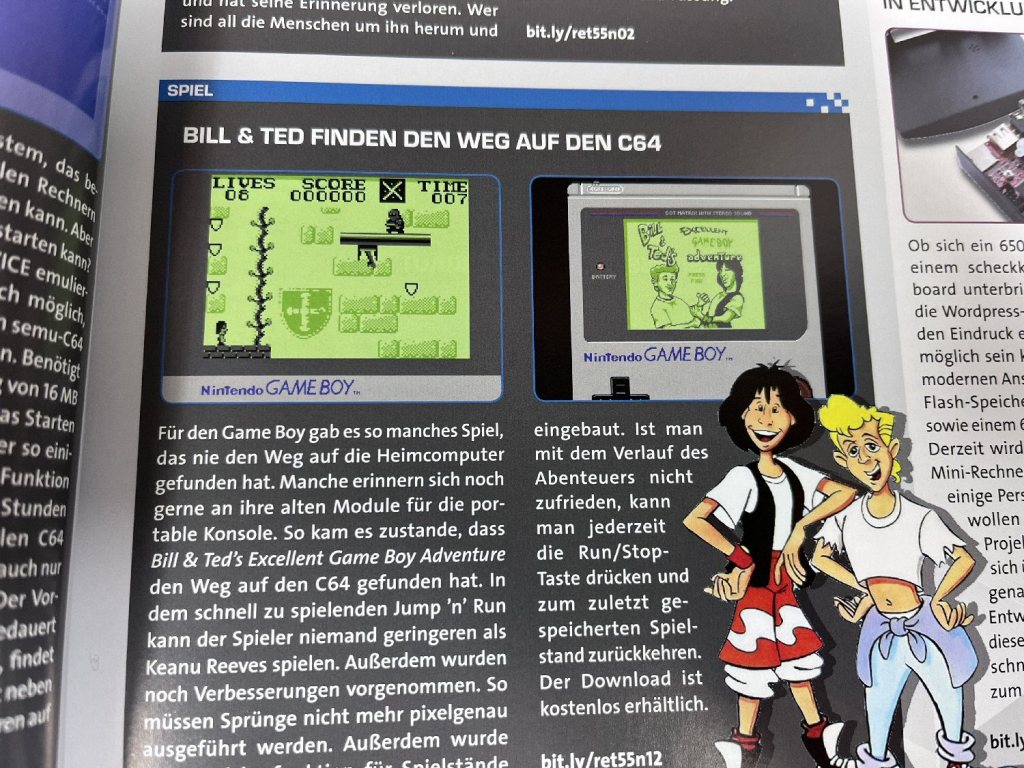 Was direkt ins Auge springt: das geniale Gargoyle’s Quest-Titelbild! Doch dazu später mehr. Die aktuelle Ausgabe beginnt mit einer grandiosen Überraschung – nämlich der Portierung von Bill & Ted’s Excellent Game Boy Adventure auf den Commodore 64. Die Version scheint sich wunderbar zu spielen. Ich habe es zwar noch nicht selbst getestet – aber diverse Youtube-Videos zeugen davon.