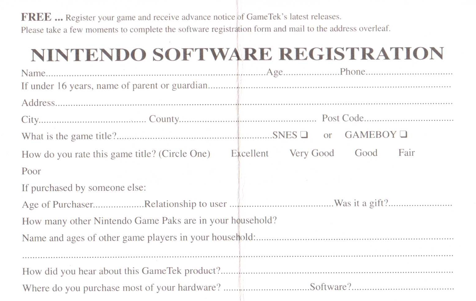 (pwc) Dem Spiel Pinball Deluxe liegt eine Software Registration Card bei. Gebt persönliche Daten preis und macht Angaben über euer Kaufverhalten. GAMETEK wird es freuen!