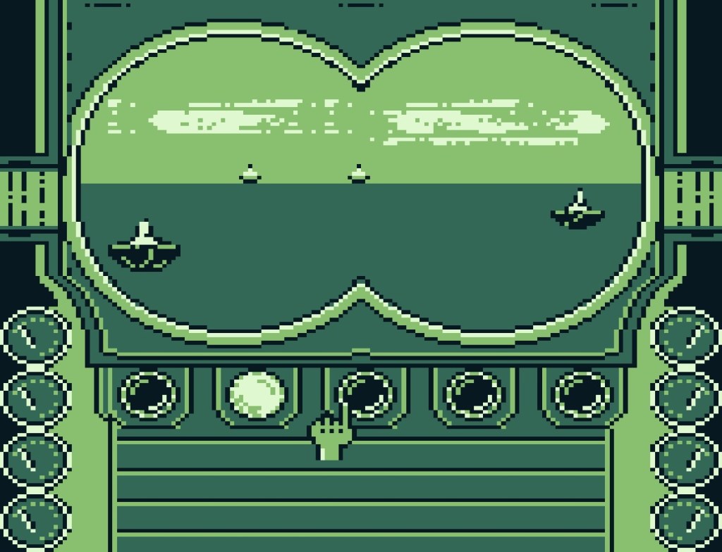 Im Laufe des Spiels werden die Schiffe immer schneller. Unter dem Sehfeld befindet sich eine Steuerkonsole mit fünf Knöpfen. Drücke immer den Knopf, über dem sich ein Schiff ankündigt, um auszuweichen. Hier sind erst einmal schnelle Reaktionen gefragt, die aber schlussendlich leider in einem reinen Button-Mashing enden.
