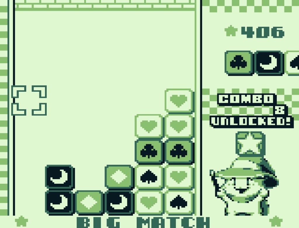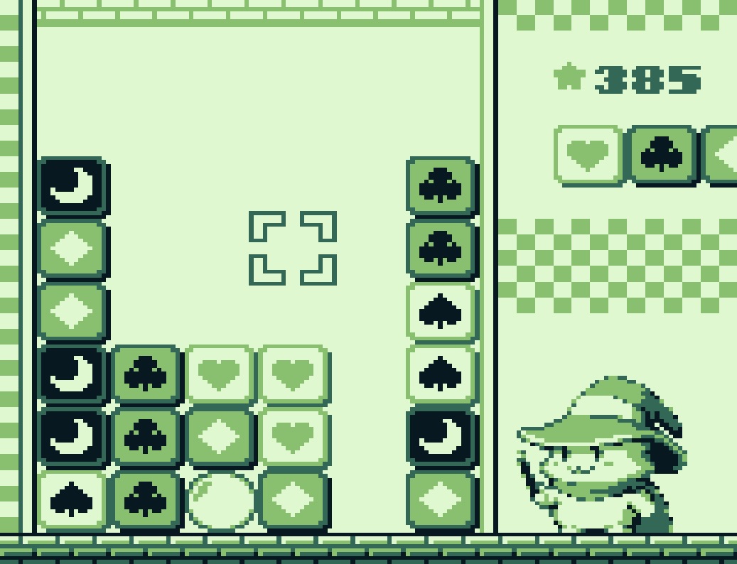 Der Spielbildschirm lässt es schon erahnen: in Fydo’s Magic Tiles müssen mindestens vier Kacheln mit demselben Motiv in eine vertikale oder horizontale Reihe gebracht werden. Hierfür bewegt ihr den Cursor mit gedrückter A-Taste an die gewünschte Position im Spielfeld, und lasst dann einfach los. Die angepackte Kachel tauscht ihre Position mit der Zielkachel, die dann auf ein unmittelbar angrenzendes Feld ausweicht. Auf diese Weise lassen sich auch längere Kachel-Ketten erzeugen.