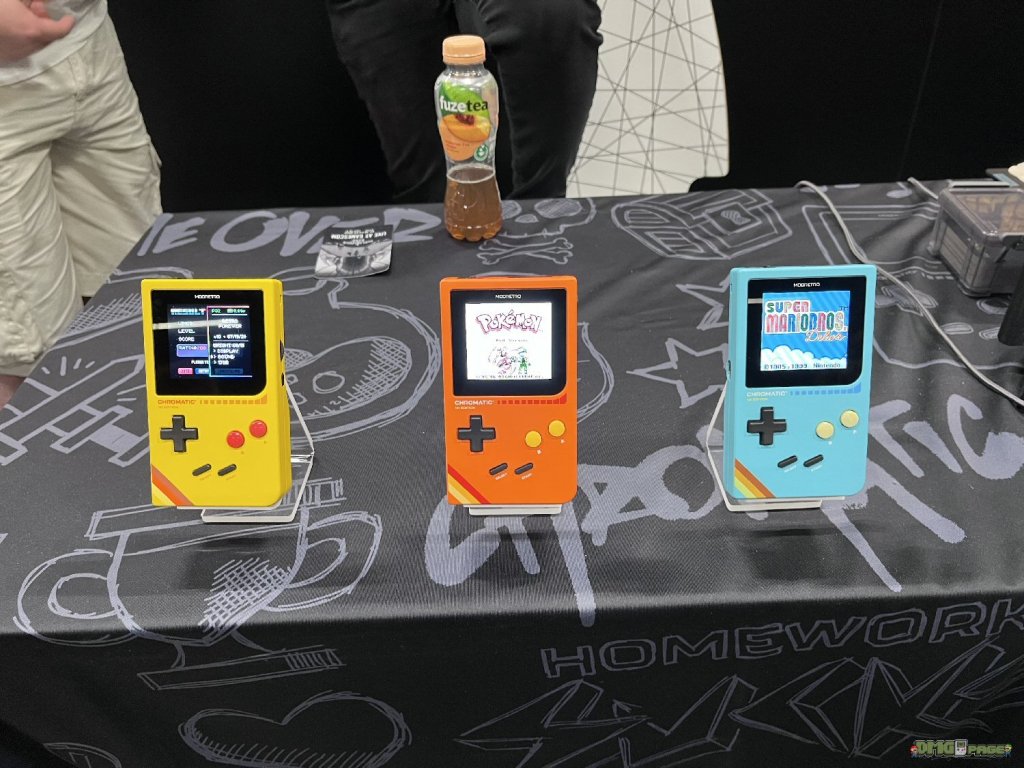 Der Anbieter hat seinen neuen Game Boy/Color Handheld Chromatic vorgestellt. Insgesamt habe ich mich etwa fünf Minuten mit dem Gerät beschäftigt und kann feststellen, dass er einerseits angenehm in der Hand liegt, relativ leicht ist, wertig verarbeitet ist und ein helles scharfes Display bietet. Das Display ist dabei zwar wesentlich kleiner als das des Analogue Pocket. Allerdings möchte sich der Chromatic auch relativ nach am Game Boy Color orientieren. Wo wir beim Thema Farbe sind: das Gerät kommt natürlich auch in verschiedenen Farbvarianten, ist bereits vorbestellbar und soll im Dezember dieses Jahres ausgeliefert werden. Leider hat ModRetro noch keinen deutschen bzw. europäischen Distributor an der Hand. Man sei aber dabei an einer Lösung zu arbeiten. ModRetro ist bewusst, dass die Versandkosten in die EU doch sehr hoch sind (zzgl. Zollgebühren).