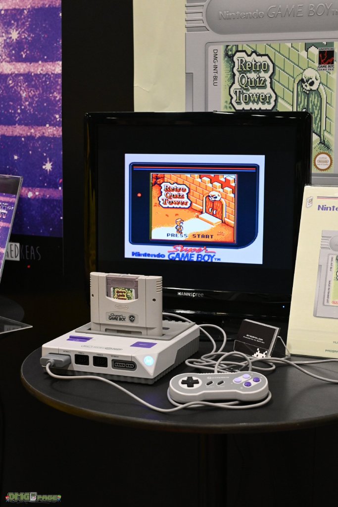 Der Kölner Gameshop war ebenfalls vor Ort und stellte etliche anspielbare Homebrew-Titel für diverse Konsolen aus. Besonders interessiert hat mich natürlich Retro Quiz Tower, dass auf Cartridge via Super Game Boy Adapter auf dem SNES abgespielt wurde. Leider konnte ich Shopinhaber Chris nicht persönlich sprechen, da ich immer zu einem ungünstigen Zeitpunkt am Stand war, als er sich gerade in Gesprächen befand. Ich wollte nämlich wissen, ob es sich bei dieser Cartridge um ein Unikat handeln würde. Später hat mir Jörg Rittershaus aka Tronimal genau das bestätigt: die Cartridge hat er selbst für Chris angefertigt. Ein reguläres physisches Release sei angedacht.