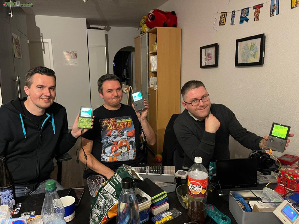 Insgesamt muss man sich unsere Treffen so vorstellen: jeder ist immer mit irgendetwas beschäftigt. Ob nun zu viert, zu zweit oder alleine gezockt wird oder gerade Fotos von der Game Boy Camera ausgedruckt werden oder über die gute alte Zeit oder anstehende Hardwareprojekte philosophiert wird und dabei im Hintergrund ein Game Gear oder Hyperkin Retron Sq im Einsatz sind – die Stimmung ist jedesmal genial!