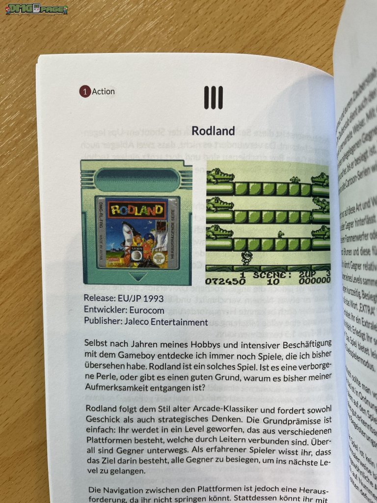 Die einzelnen Beiträge sind dabei gleich gestaltet. Das jeweilige Spiel präsentiert sich auf einer Doppelseite, wobei links ein Abdruck der Cartridge und ein Screenshot berücksichtigt sind – ergänzt durch nützliche Hintergrundinformationen wie Releasejahr, Entwickler und Publisher. Der übrige Platz ist für die Vorstellung des Spiels reserviert.