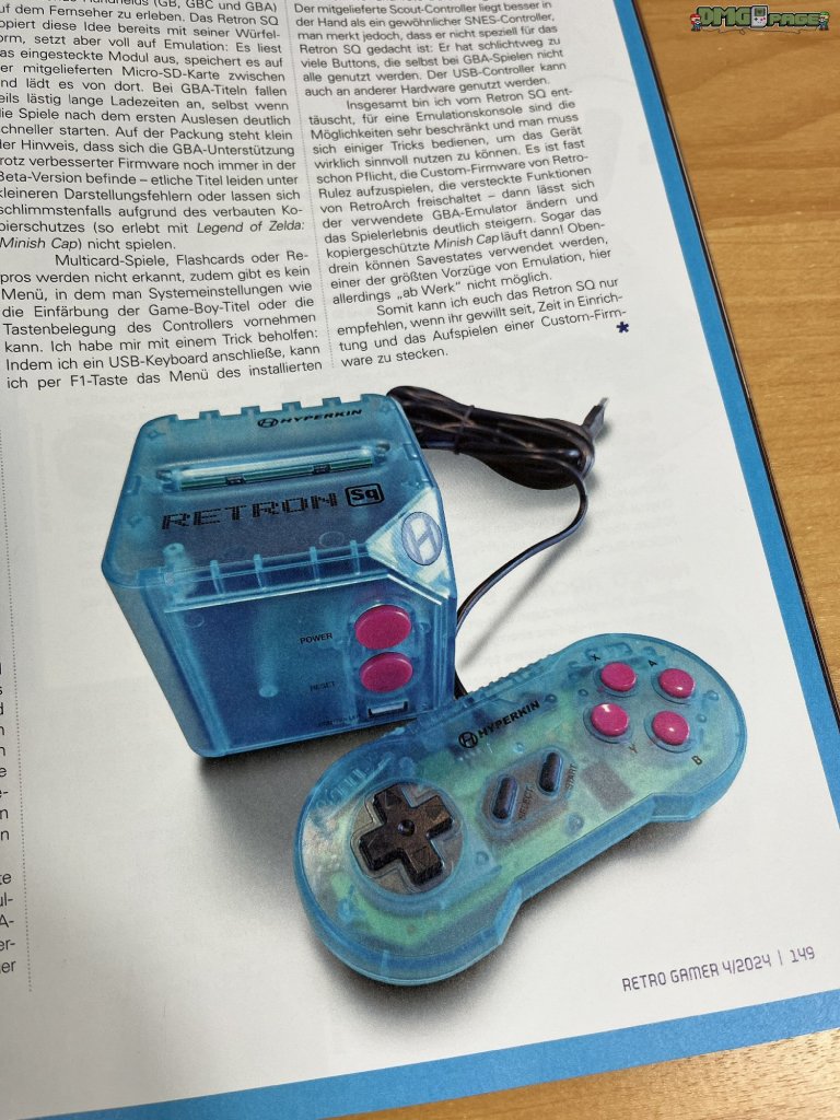 Im hinteren Viertel der retro Gamer werdet ihr einen kurzen Bericht zu Retro-Gadgets finden. Neben zwei Gamepads und dem Anbernic-Handheld RG35XX SP, wird auch der Retron SQ von Hyperkin vorgestellt. Mit der Game Boy-Emulationskonsole im hübschen Würfeldesign lassen sich Game Boy Classic, Color und Advance Spiele auslesen und im Anschluss von der mitgelieferten SD-Speicherkarte abspielen. Die im Beitrag von Hardy Heßdörfer erwähnten Probleme sollten zwischenzeitlich behoben sein. Aktuelle Geräte werden mit der Firmware-Version 1.2 ausgeliefert und bieten eine wesentlich verbesserte Spielerfahrung (erhältlich zum Beispiel im ►Dragonbox Shop).