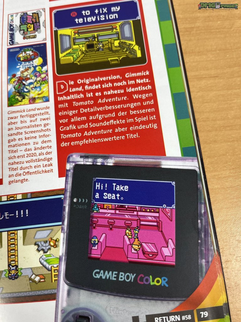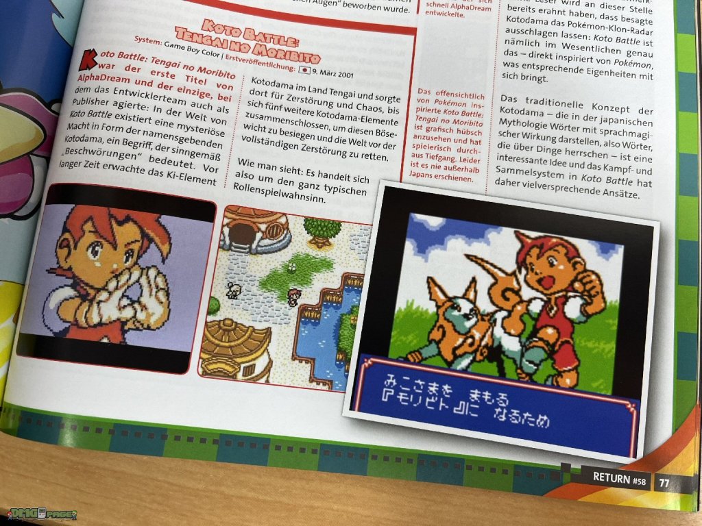 Im Hintergrundbericht zur Firma AlphaDream, bekommen wir deren Erstlingswerk Koto Battle: Tengai No Moribito aus dem Jahr 2001 präsentiert. Das stark an die japanische Kultur angelehnte Spiel, in dem ihr via Karten Monster, Items und Magie beschwören könnt, wurde im Westen leider nicht veröffentlicht. Leider existiert für das recht textlastige Spiel bisher keine Fanübersetzung. Ein ganz anderes Schicksal ereilte Gimmick Land. Das Rollenspiel für den Game Boy Color war nahezu fertiggestellt (Gold-Status), allerdings entschied man sich bei Nintendo die Veröffentlichung unter dem geänderten Namen Tomato Adventure lieber auf den Game Boy Advance zu forcieren.