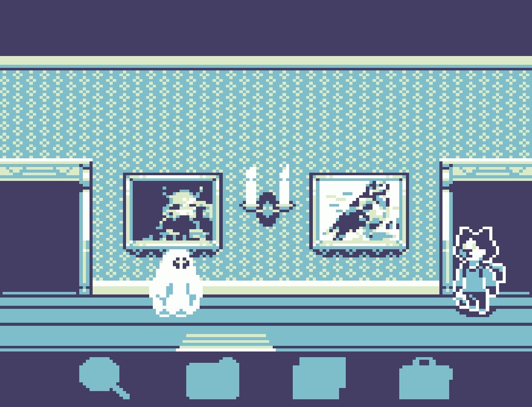 (pwc) Nach der ►Game Boy Camera Gallery 2022 kommt nun die Fortsetzung der Bildergalerie für den Game Boy. Diesmal bist du als Redakteur für das örtliche Kunstmagazin unterwegs und sollst einen ansprechenden Beitrag verfassen. Die Adresse auf deiner Einladung führt dich geradewegs vor eine Villa, die eingehüllt in die tiefschwarze Nacht, äußerst unheimlich wirkt. Im Foyer wirst du von Bo begrüßt, den du bereits aus der Game Boy Camera Gallery 2022 kennst. Er kuratiert die Ausstellung und verwickelt dich in etwas Small-Talk. Dabei entschuldigt er sich direkt im Voraus, falls dir etwas Seltsames begegnen sollte. Angeblich würde es in seinem Haus spuken.