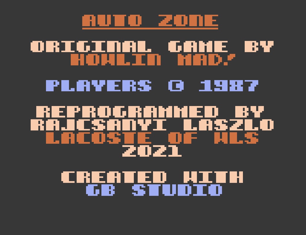 (pwc) Auto Zone wurde 1987 von Howlin Mad für den Commodore 16/Plus 4 veröffentlicht. Game Boy Color Fans dürfen sich freuen: den Klassiker gibt es jetzt auch für den Nintendo-Handheld.