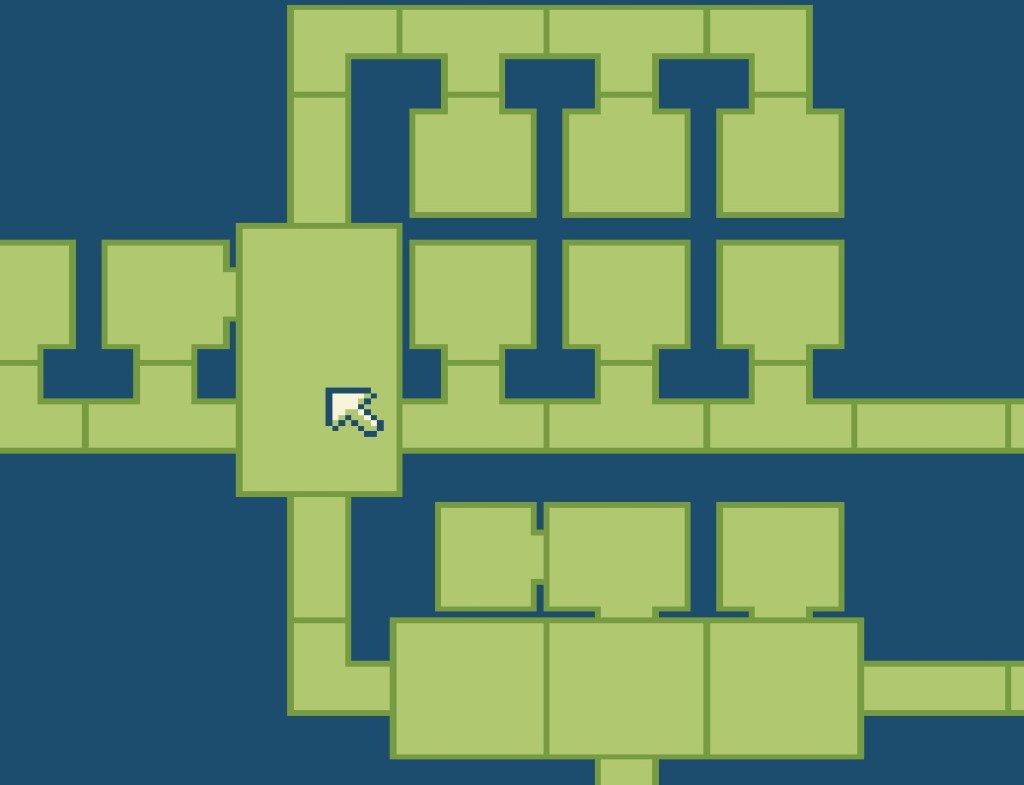 Mit Taste B könnt ihr euch jederzeit euren Status anzeigen lassen. Drückt ihr die Start-Taste, erfahrt ihr euren momentanen Standort im Level. Die Karte zeigt sämtliche Räumlichkeiten an – allerdings nicht, was sich in den Räumlichkeiten verbirgt. So entdeckt ihr eher zufällig eine Menge nützlicher Items: