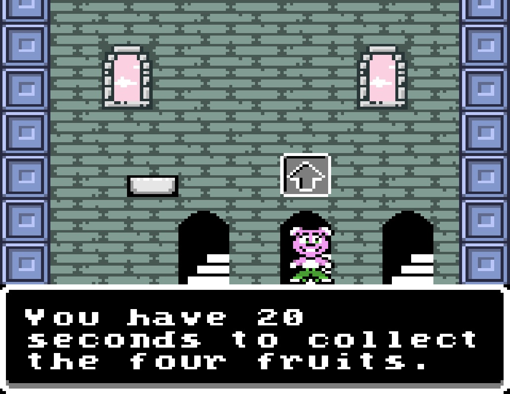 -20 Sekunden, um die 4 Früchte einzusammeln und