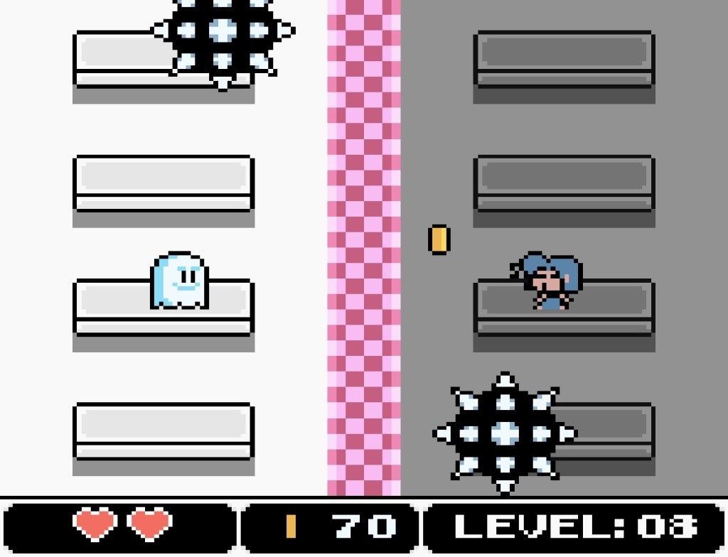 (pwc) In Astral Possession für den Game Boy Color spielt ihr in der Rolle eines Gespenstes und müsst Münzen einsammeln. Die Münzen erscheinen jeweils einzeln wahllos im Level. Das Problem: Teile des Levels sind durch eine Barrikade voneinander getrennt. Um auf die andere Seite zu gelangen, müsst ihr in die Haut eines der zwei NPCs fahren: ein blauhaariges Mädchen oder in einen braunhaarigen Jungen. Von einem NPC habt ihr immer Besitz genommen, so dass ihr im Spiel jeweils nur einen der Beiden zu Gesicht bekommt.