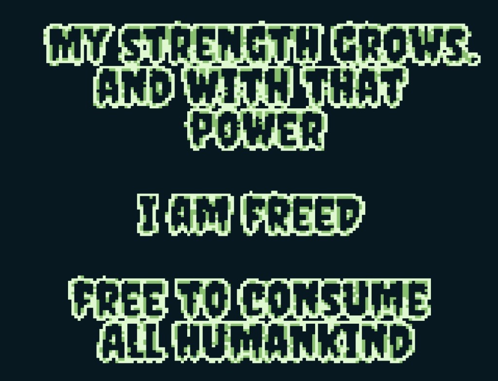 Hierfür müsst ihr die Personen in der realen Welt fressen, ohne euch erwischen zu lassen. In der Anzeige am unteren Bildschirmrand bekommt ihr rechts angezeigt, wie viele Menschen gefressen werden müssen, bevor es ins nächste Level geht. Für eure Mahlzeiten habt ihr nicht ewig Zeit: beobachtet genau den Zeitbalken. Dieser baut sich kontinuierlich ab (in der realen Welt) und lässt sich nur mit einer Mahlzeit wieder auffüllen.