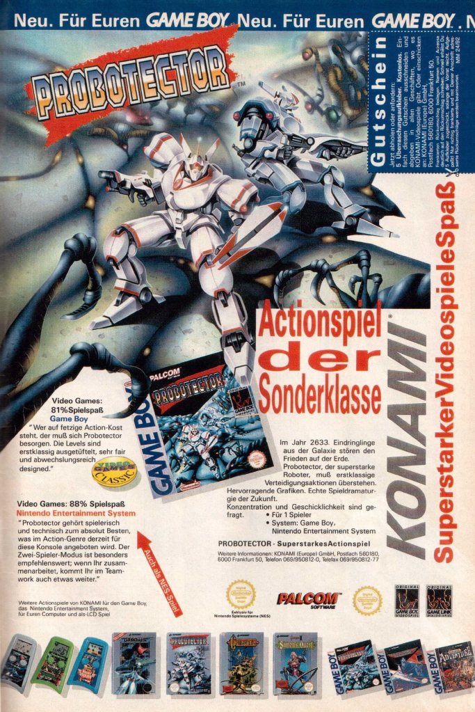 (pwc) Ein weiterer Pflichttitel in jeder Game Boy Classic Sammlung ist natürlich Probotector. Das Jump and Shoot ist so dermaßen kompromisslos, dass ihr durchaus mehrere Anläufe benötigt, um im Spiel erfolgreich zu sein. Das US-Equivalent setzt übrigens auf menschliche Söldner und hört auf den Namen Operation C.