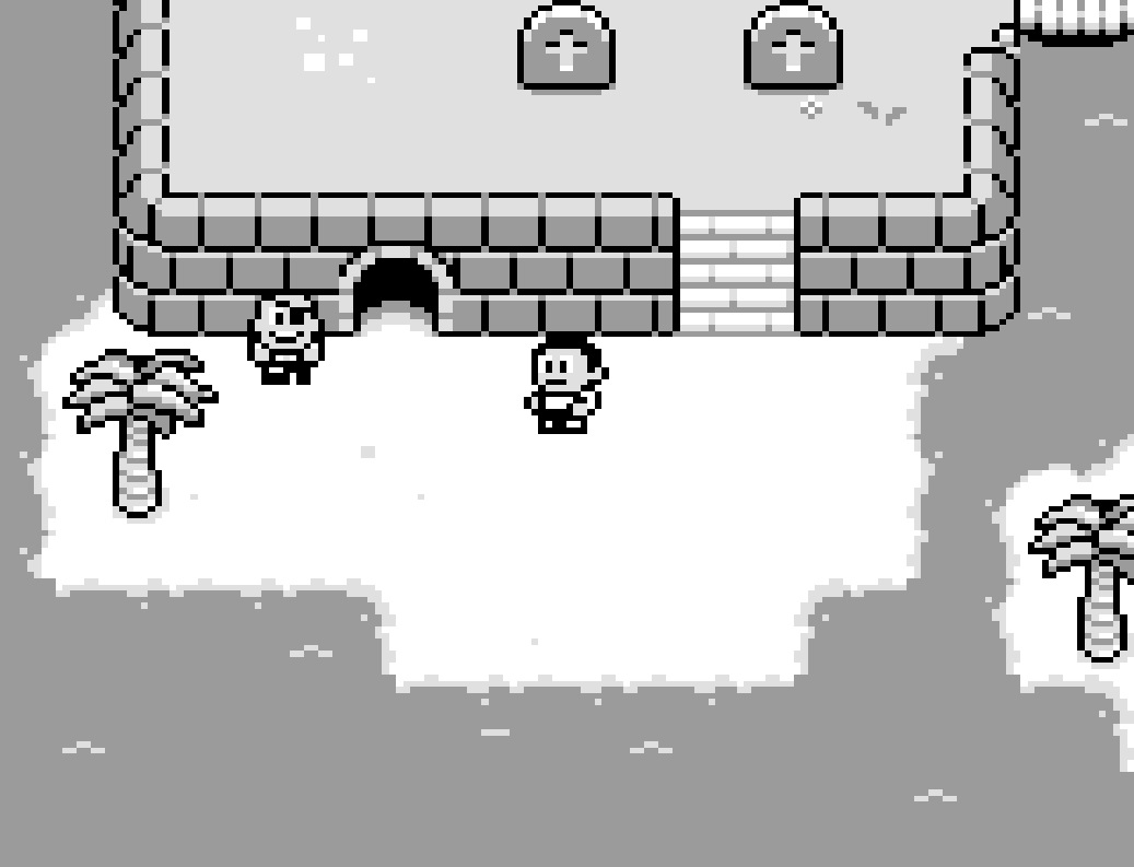 Wenn du dich westlich hältst, gelangst du auf den Friedhof. Sehr merkwürdig: ein Grabstein fehlt. Unterhalb des Friedhofs hält sich ein Pirat auf, der auf der Suche nach dem Totengräber ist.