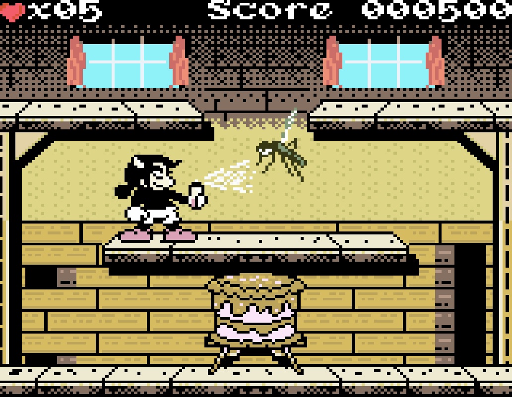 Ins Spiel startest du mit 5 Leben. Extraleben gibt es beim Verdienen von Punkten oder im Upgrade-Store. Jedes Level findet in einem einzigen Screen statt, in dem du den Kuchen vor den Insekten, Spinnen und Würmern verteidigen musst. Hierfür steht dir deine Spraydose zur Verfügung, mit der du, abhängig vom Gegnertyp, mehrere Sprühstöße abgibst.
