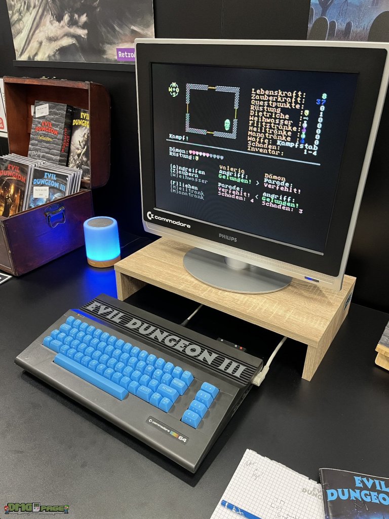 Auch Factor 5 bietet äußerst sehenswerte Vitrinen. Turrican (Amiga), Apidya (Amiga), International Superstar Soccer Deluxe (Mega Drive), Animaniacs (Game Boy), Probotector 2 (Game Boy) oder auch Lair (PS3) waren einige der Titel, die ausgestellt wurden. Ob es mir irgendwann einmal gelingen wird ein Selfie mit Chris Hülsbeck zu machen? Aktuell habe ich mit Evil Dungeon für den C-64 von ►RetroArts begonnen. Bisher hat es aber immer noch ein Ork geschafft, mein Abenteuer in den dunklen Katakomben vorzeitig zu beenden. Aber ich gebe nicht auf. Immerhin besteht die Reihe schon aus drei Teilen, die ich allesamt durchspielen möchte. Am Stand haben sich immer wieder neue Heldinnen und Helden eingefunden, um in der Rolle des furchtlosen Alrik auf ein großes Abenteuer zu gehen.