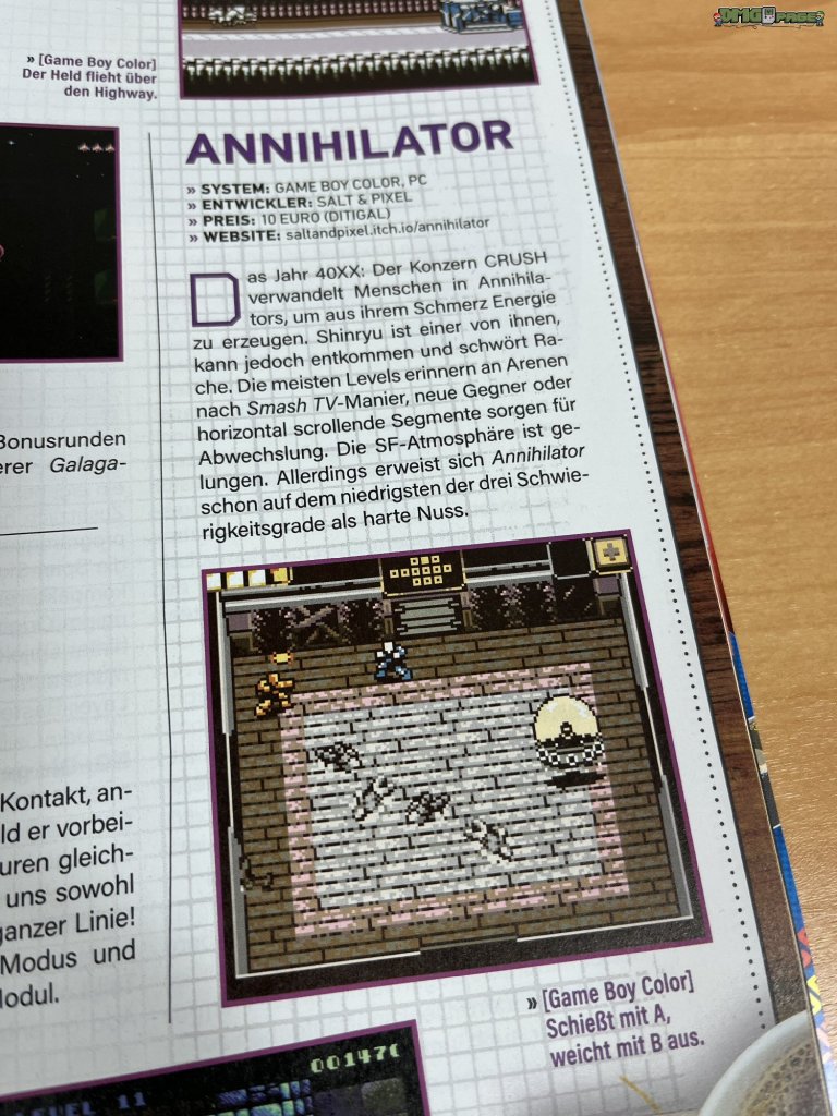 (pwc) In der aktuellen retro Gamer wird auf den Game Boy an mehreren Stellen verwiesen. Im Schwerpunktthema „Miyamoto Magie“ gibt es Bezüge zu Wave Race, Donkey Kong, Mole Mania und Pokémon rot und blau. Der Beitrag „Making of 750cc Grand Prix“ beschäftigt sich mit dem Motorrad-Klassiker für den Amstrad CPC. Daneben wird auf weitere ähnliche Spiele referenziert: Excite Bike (NES), Super Hang On (CPC) oder auch Road Rash für den Game Boy. Das nächste Making of führt uns in den Dschungel: Jungle Strike ist für verschiedene Konsolen erschienen – unter anderem auch für den Game Boy. In der Kategorie „Auf dem Sofa mit …“ konnte für diese Ausgabe der retro Gamer Dylan Cuthbert gewonnen werden. Als erstes großes Projekt als Spieledesigner zählt für ihn X für den klassischen Game Boy. In diesem Shooter wurden 3D-Drahtgittermodelle verwendet. X führte ihn schlussendlich zu seinem Starwing-Auftrag. Zu guter Letzt darf auch ein Homebrew-Titel nicht fehlen: Annihilator! Das Spiel erinnert an Smash TV und ist eher für hartnäckige Spieler geeignet. Der Schwierigkeitsgrad ist nicht von schlechten Eltern.