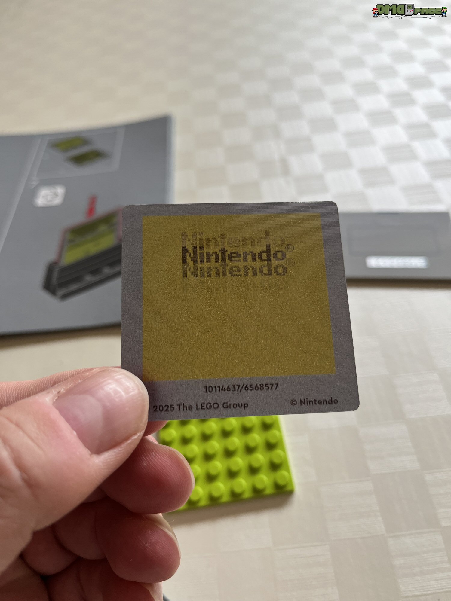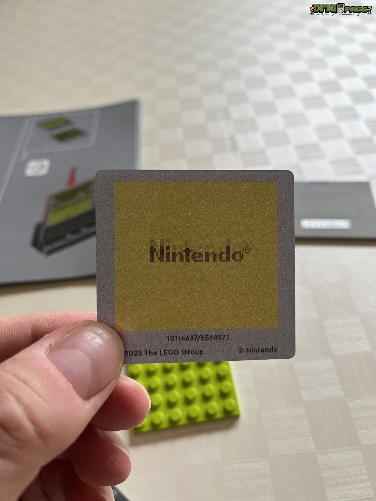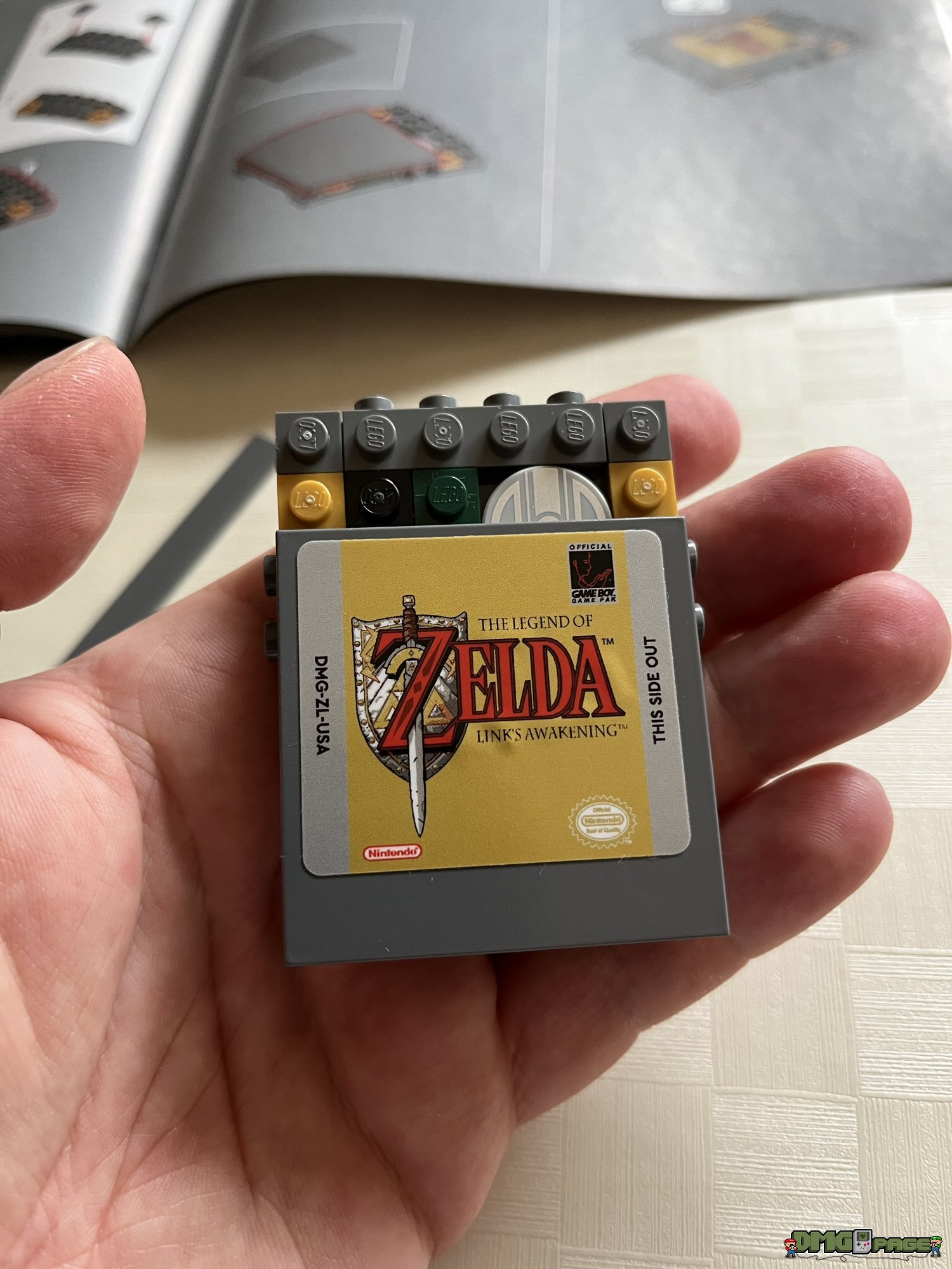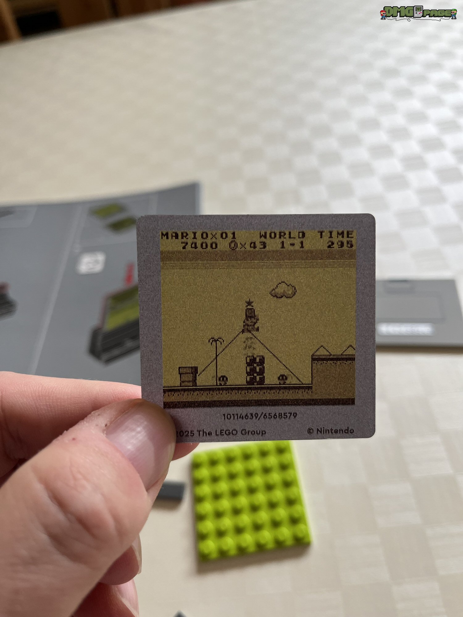 Absolut genial umgesetzt sind die drei beiliegenden Lentikular-Bilder. Die umgangssprachlich auch als Wackelbilder bekannten Linsenrasterbilder könnt ihr nach Belieben in das Game Boy-Modell einsetzen. Zur Auswahl stehen euch das bewegliche Nintendo-Logo (Prüfkontrolle), sowie Szenen aus den beiden oben erwähnten Spielen. Für Lego-Freunde, die sich (zu Recht) über oftmals übertriebene Aufkleberbögen bei LEGO ärgern, kann ich Entwarnung geben: alle beschrifteten Bauteile sind tatsächlich bedruckt. Die einzigen beiden Aufkleber im Set, sind die Modulaufkleber für die beiliegenden Spiele.