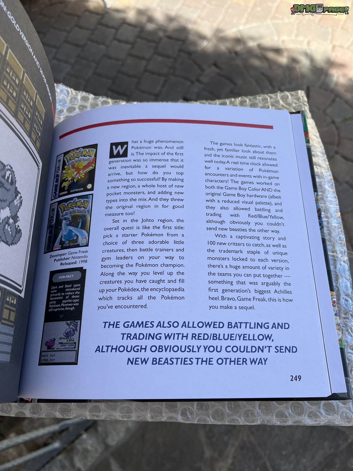 Das 312 Seiten starke Buch stellt den Game Boy Color in den Vordergrund und wird eröffnet durch seine Geschichte und den Vergleich zu Konkurrenten wie Atari Lynx, Sega Game Gear, Neo Geo Pocket/Color, Bandai Wonderswan. Relativ schnell werdet ihr in interessante Hardwareerweiterungen wie den seltenen Page Boy oder das N64 Transfer Pak eingewiesen, das Spiele wie Mario Tennis, Perfect Dark oder auch Mickey’s Speedway USA unterstützt. Daneben gibt es praktische Tipps zum Identifizieren von Original-Spielmodulen, um sich besser vor Raubkopien zu schützen. Auch werden die Themen Rumblefunktion, unlizenzierte Game Boy Color Spiele und Fanübersetzungen behandelt.