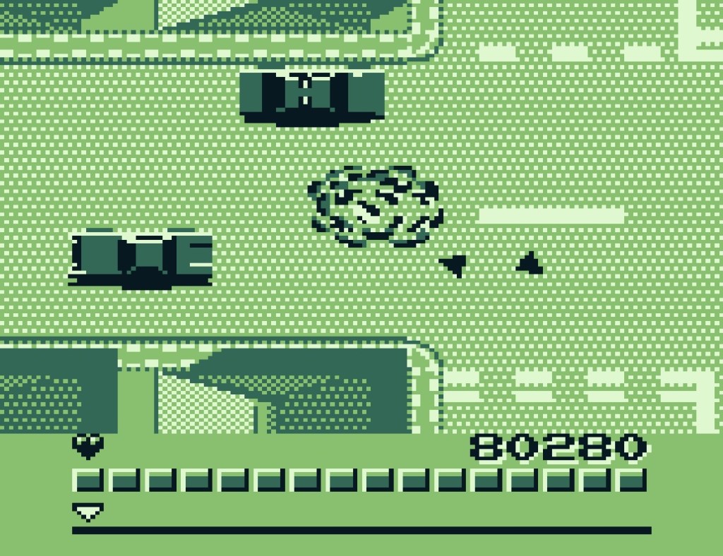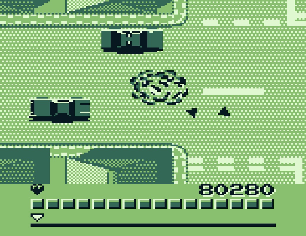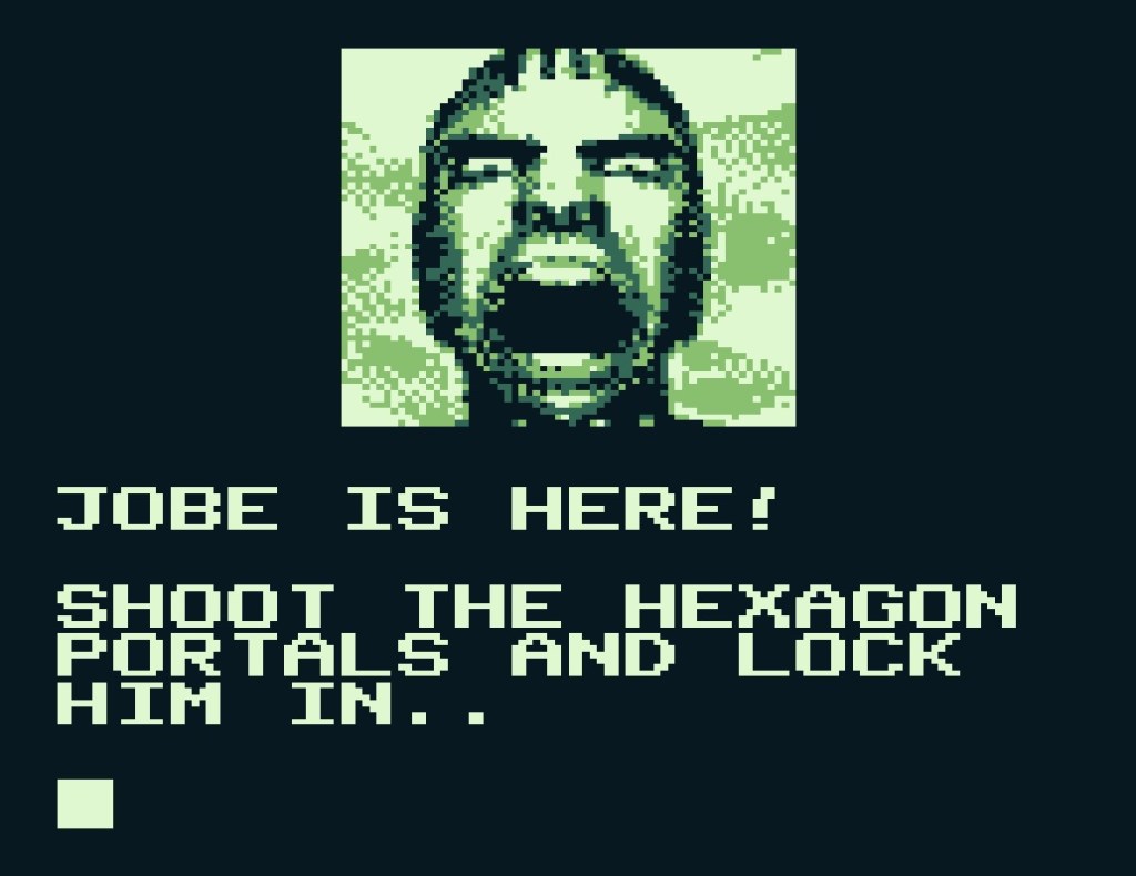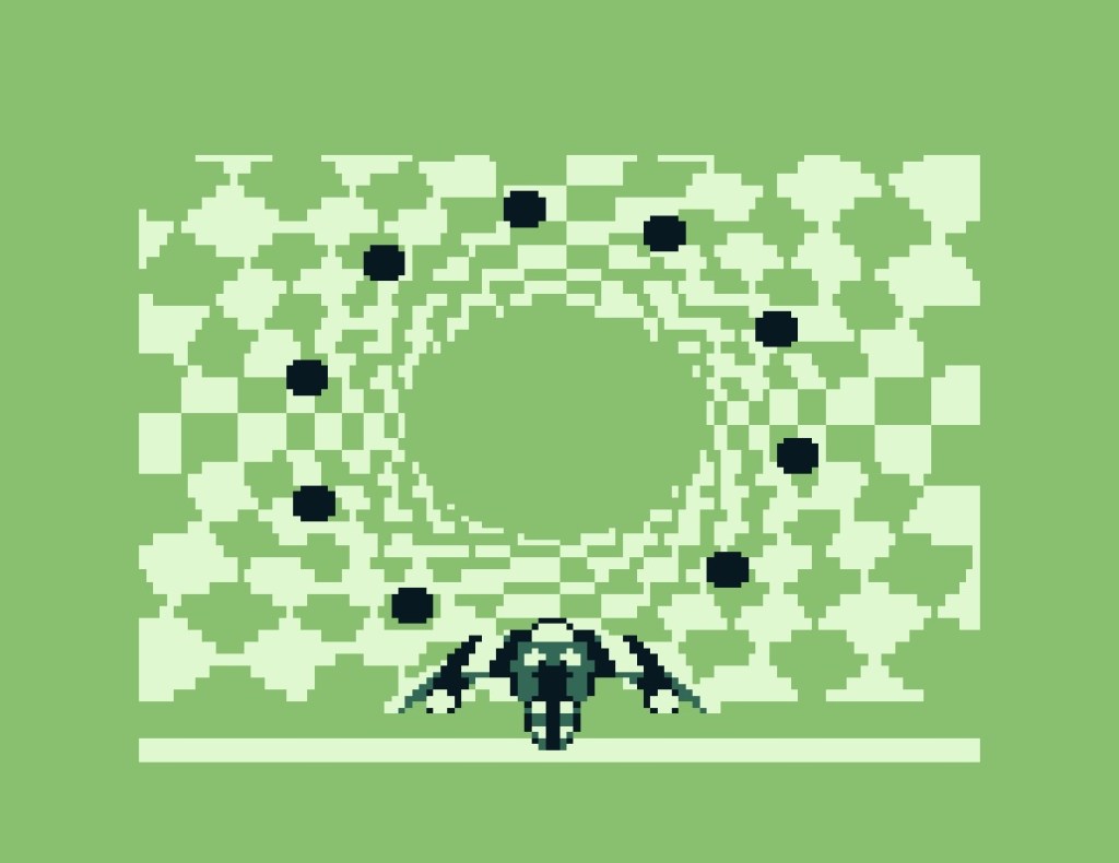 Der Flug durch den Datentunnel ist für Game Boy-Verhältnisse wirklich gut umgesetzt. Dabei manövriert ihr ein Raumschiff möglichst geschickt durch die schwarzen kugelförmigen Hindernisse. Spannend wird es, wenn die Hindernisse einen Ring bilden und oftmals zu spät klar wird, wo sich im Ring die sichere Lücke befindet. Am Tunnelende trefft ihr auf den virtuellen Kopf von Jobe, der Projektile auf euch schießt. Im gesamten Kampf befinden sich etliche Objekte auf dem Bildschirm, was auf Kosten der Übersichtlichkeit geht. Wichtig ist, dass ihr euch nicht auf Jobe selbst konzentriert, sondern vielmehr auf die VR-Portale im Hintergrund. Versucht diese so oft wie nur möglich zu treffen, um Jobes Flucht zu verhindern.