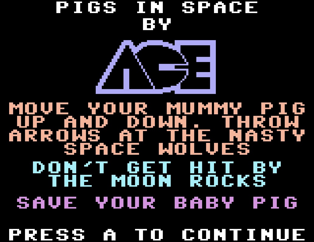 (pwc) Pigs in Space ist 1984 für den Commodore 64 erschienen und orientiert sich an dem ein Jahr älteren und deutlich besseren Pooyan. Die Umsetzung für den Game Boy Color ist hingegen erst in diesem Jahr veröffentlicht worden.