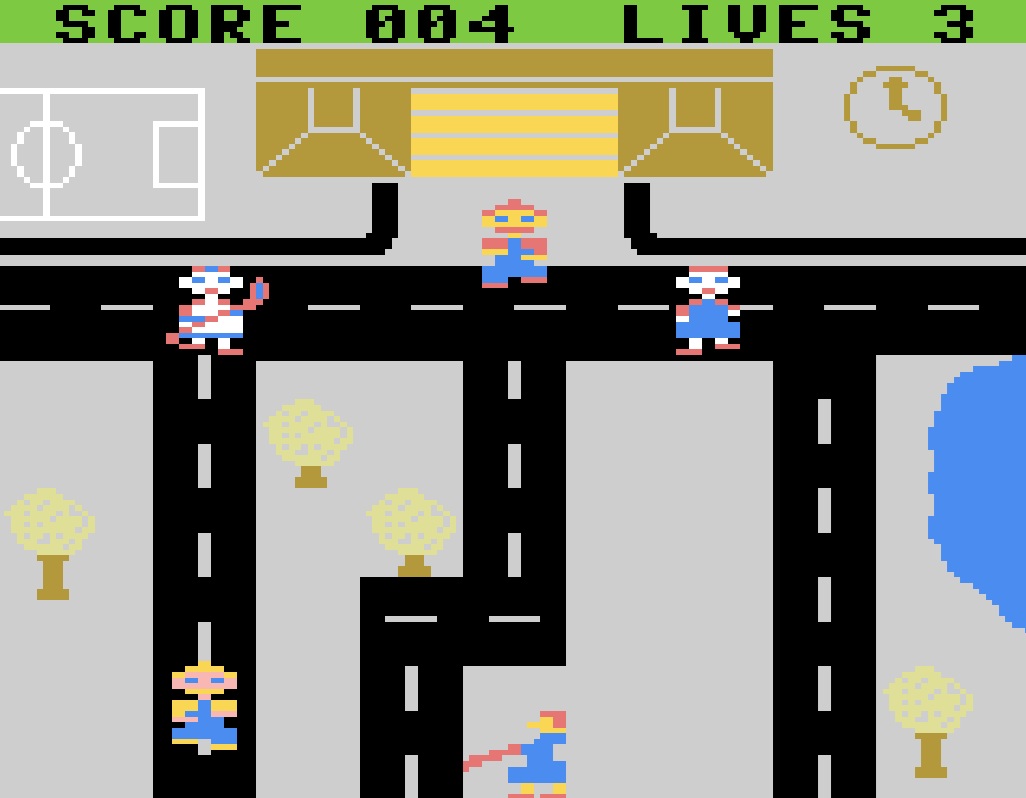Das Spielprinzip ist recht simpel. Am oberen Bildschirmrand befindet sich das Schulgebäude, aus dem sich die Kinder völlig unberechenbar zum unteren Bildschirmrand bewegen. Die horizontale Straße wird von einem Schullotsen mit Warnweste und Kelle abgelaufen. Die Kelle dient dabei als Waffe gegen die Oma.