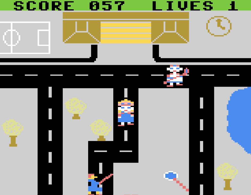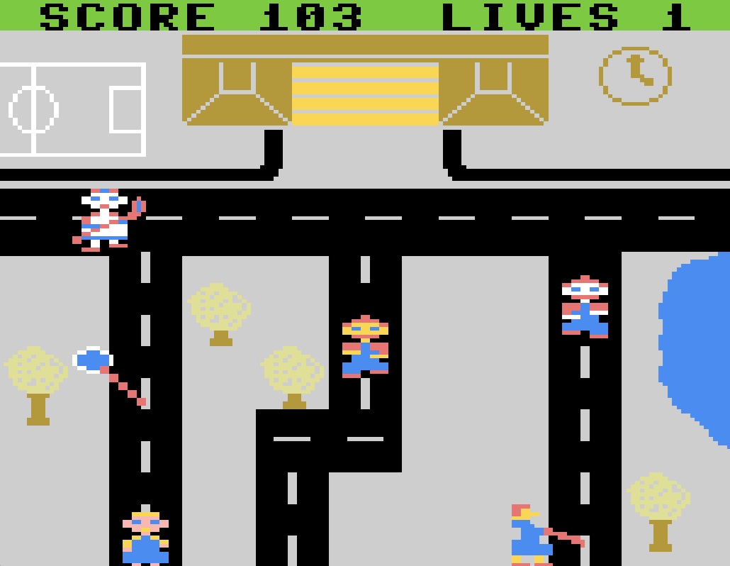 Das Spiel endet, sobald die drei Leben der Oma aufgebraucht sind. Vielleicht endet das Spiel auch, wenn ein bestimmter Highscore erreicht wird. Theoretisch könnten bis zu 999 Punkte gesammelt werden. Wer dies gerne einmal testen möchte – nur zu. Bei 103 Punkten war für mich Schluss.