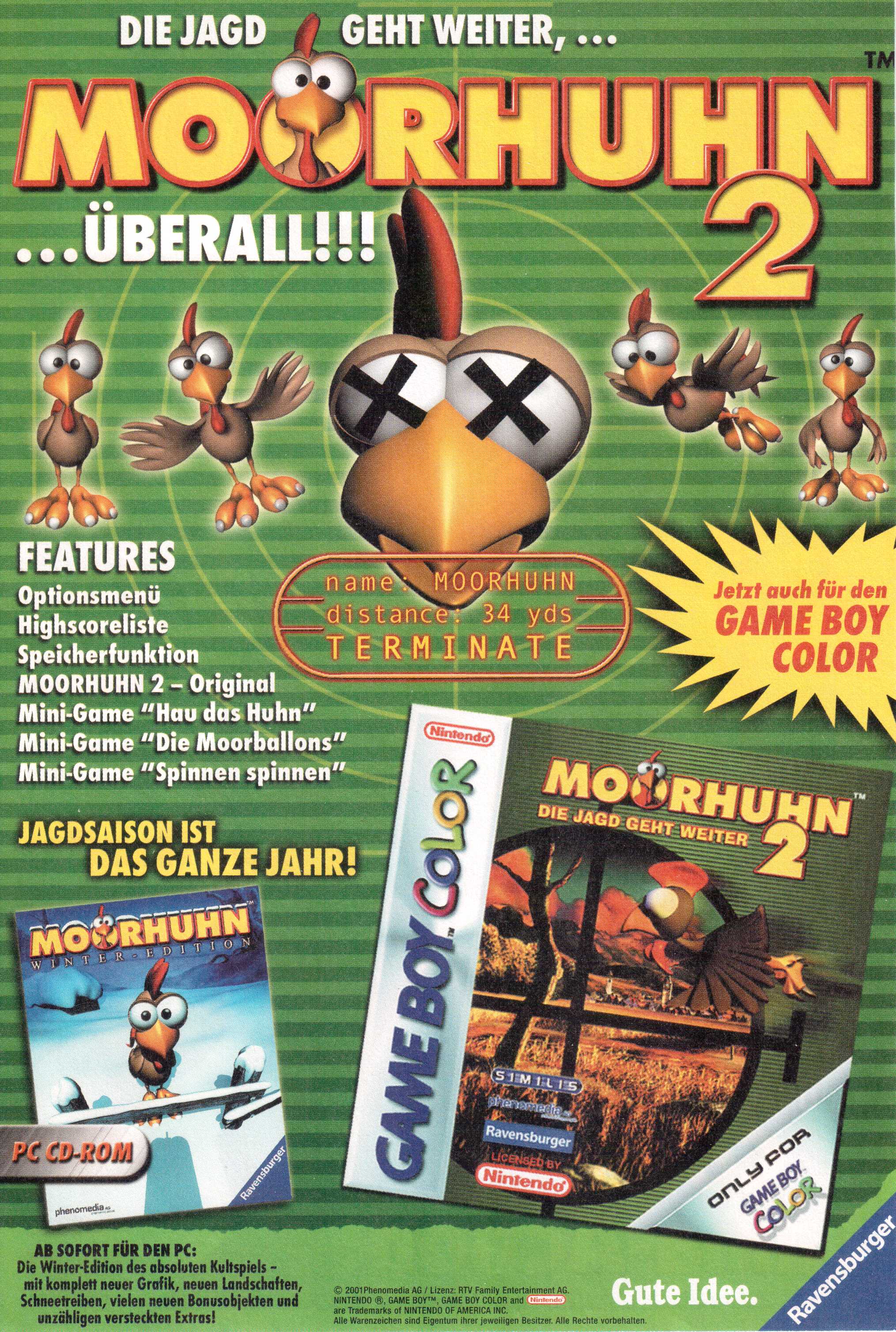 (pwc) Endlich ist die Jagdsaison eröffnet und das bedeutet: Moorhühner erlegen! Natürlich nicht in echt, sondern auf dem Game Boy Color. Mit Moorhuhn 2 stehen nun sogar drei Mini-Games zur Verfügung. Obwohl bis heute immer wieder neue Moorhuhn-Spiele veröffentlicht werden, bleiben sie für mich doch ganz stark mit den 2000er Jahren verknüpft. Heute kann ich der Reihe nicht mehr allzu viel abgewinnen.