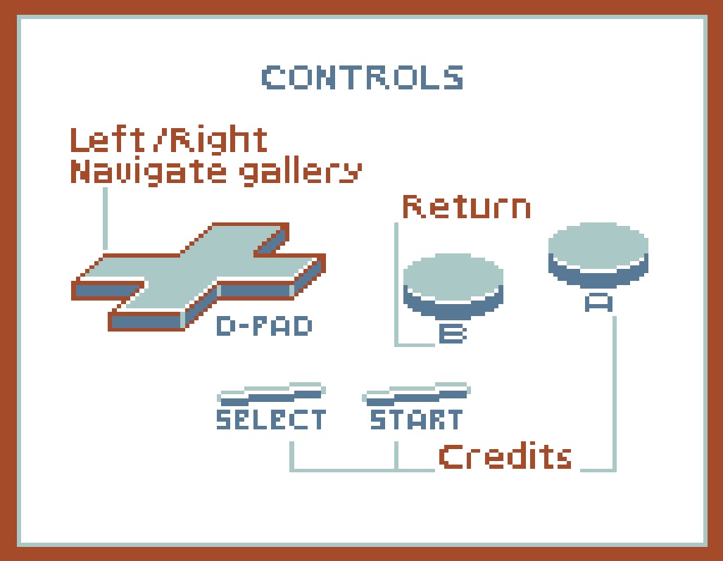 In das GB Studio Pixel Art Jam 2024 The Gallery-ROM haben es am Ende 343 Bilder geschafft. Die kleinen Kunstwerke lassen sich automatisch in einer Slideshow abspielen oder ihr nutzt einen der beiden Filter. So könnt ihr euch die Künstler anzeigen lassen und damit ganz gezielt nach bestimmten Bildern Ausschau halten oder ihr lasst euch die Bilder nach der genutzten Farbpalette kategorisieren.